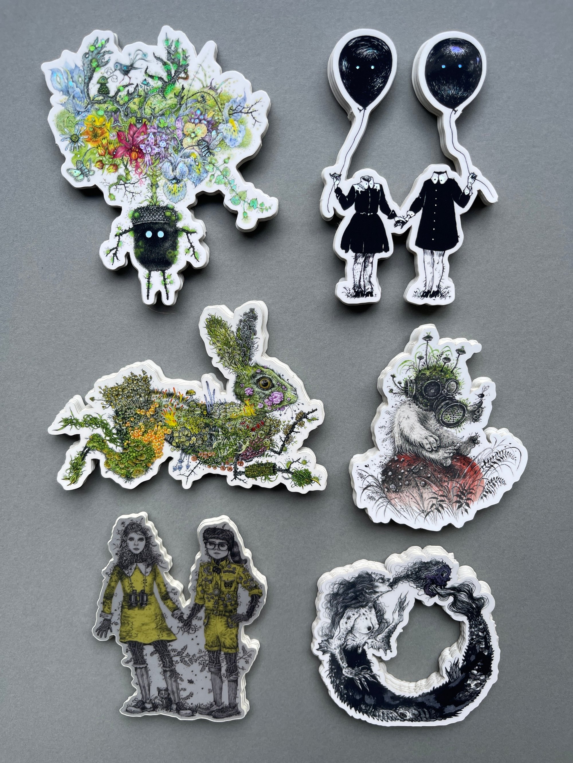 My new Butterfield sticker pack contains six of my biggest and most striking stickers in one pack. I love the large size because it captures the details from the original artwork. Wishing you lots of fun finding places to put them all! One of favourite spots to pop a sticker is on notebooks, water bottles and phones. But I’m sure you’ll find the right place for your stickers.