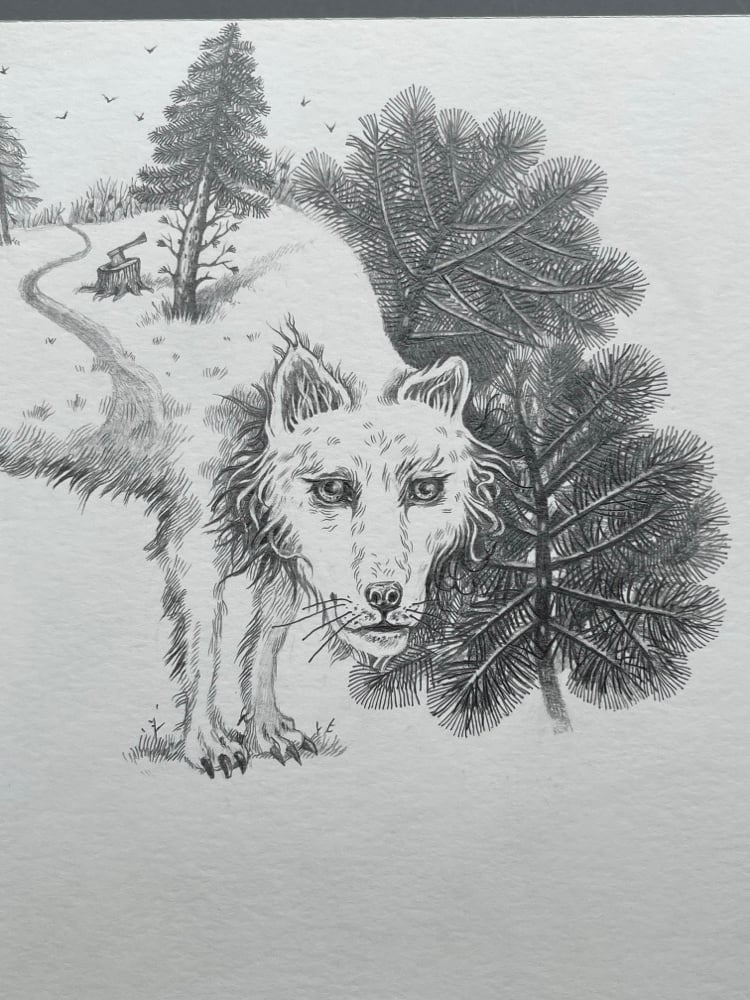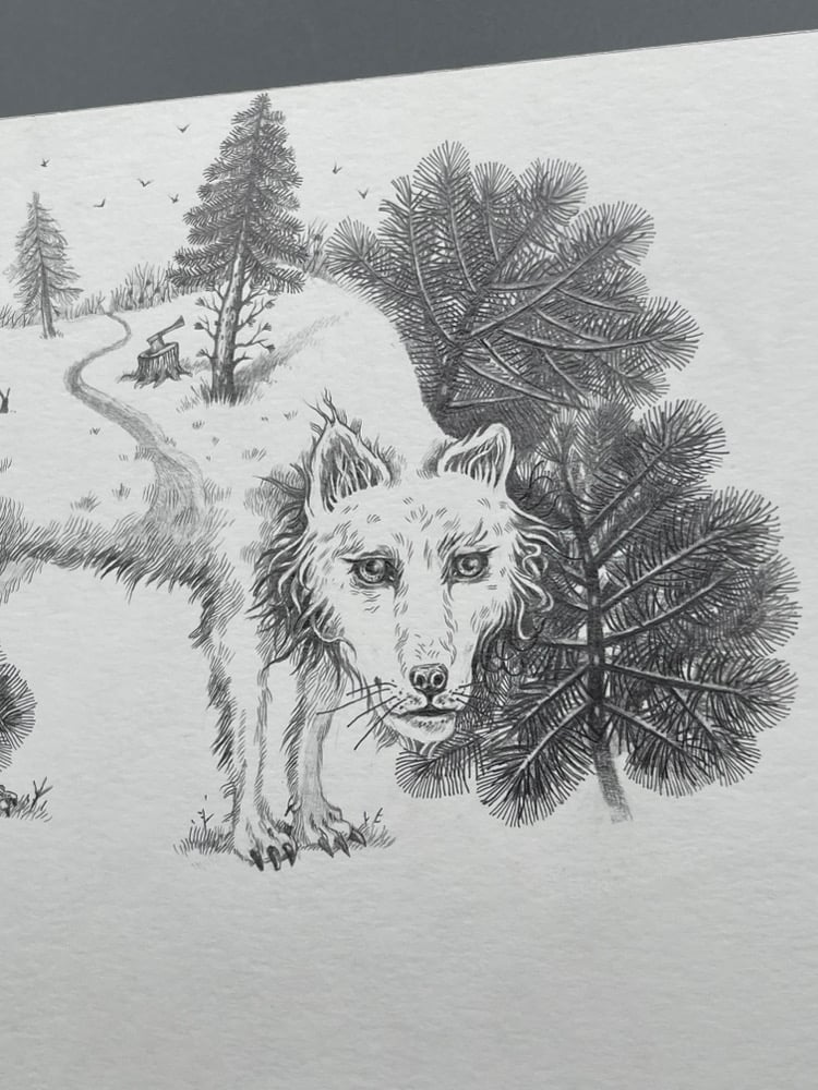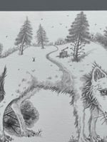 Country Roads artwork, pencil on Fabriano 300gsm archival, acid free paper. Paper measures 11” x 7” (28cm x 18cm.) This piece was originally created for The Bog Chronicles/Klampyniu Kronikos, a Lithuanian book I was honoured to illustrate for award winning author Neringa Vaitkute.
