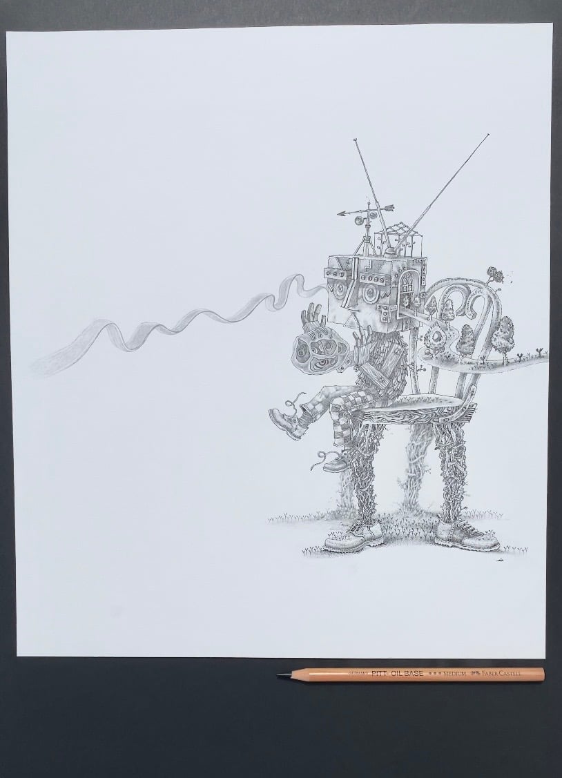 Daniel is the name of this character. They are new to the world, and endlessly curious about everything. This enjoyment fires Daniel’s imagination, and from that happiness new life comes. One of the best parts to work on in this piece was the legs of the chair, I half expect them to run off with Daniel for more adventures and excitement.