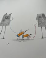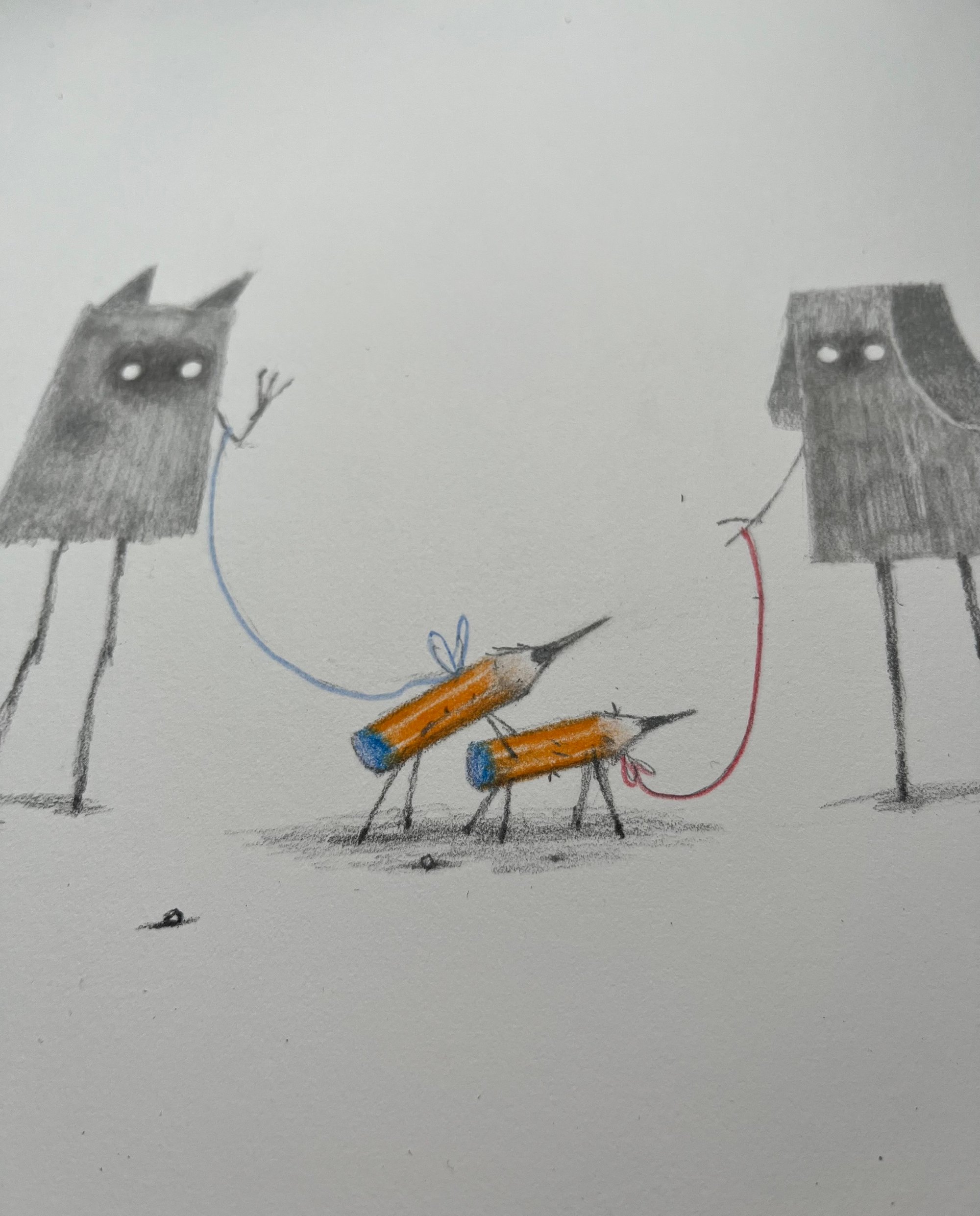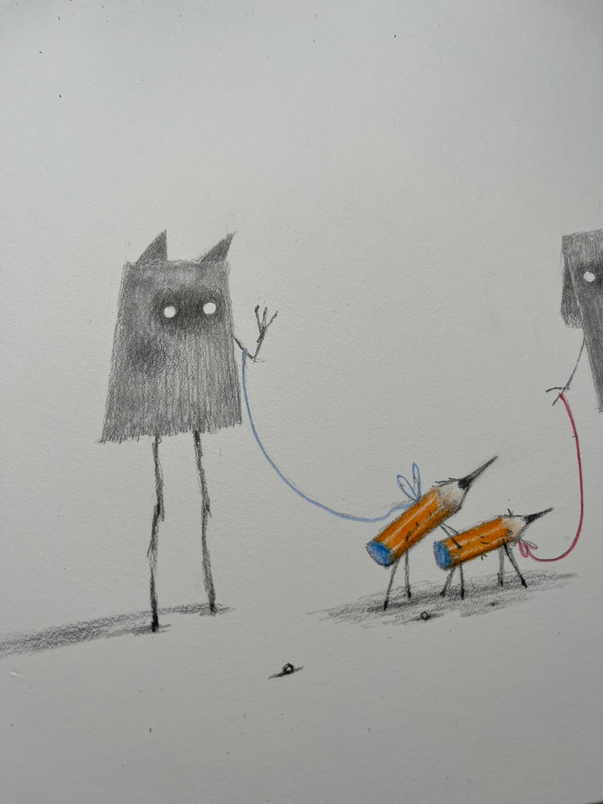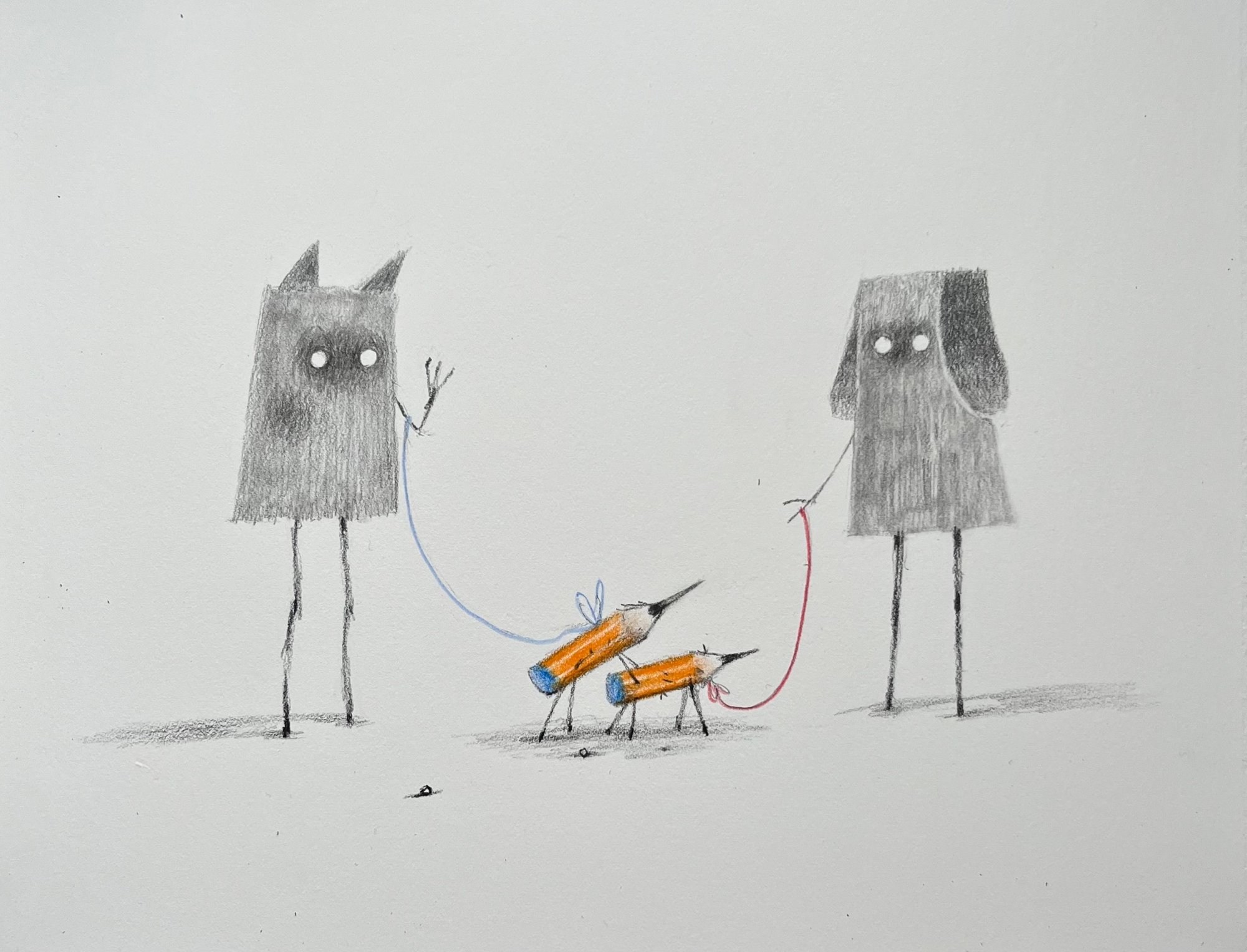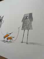 I'm delighted to explore the lives of this pair of pet owners as they go about their evening walk. Printed on 100% cotton, acid free, Museum Etching 350g/m textured heavyweight archival paper.