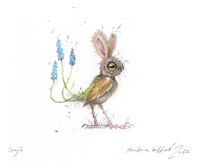 Gaja is part of my Creatures of Pluma series - bunny bird hybrids with blooming flora. Six more of their feathered friends can be found in the Pluma 6 sticker pack. Click here for direct link to the Pluma 6 sticker pack