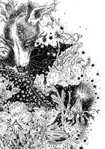 As a child I loved finding stray cats and bringing them home. Unfortunately, I had to do this in secret because my grandmother would never allow it. She really loved pets and flowers (that’s where I get my passion from) but even she had limits. So I was forced to hide the new arrivals in my room, in a box, in the closet, under my bed or in my bed. I loved to sit for hours stroking and caring for them, they needed me and I needed them. Usually they were all discovered after a couple of days and set free. That compulsion, the strong desire I had to befriend another little soul guides all these new artworks. With my pen and brush I stroke them for hours, attend to every tiny detail and fix every part of them, and all are lovingly adorned with beautiful flowers. I can make them happy and carefree and we can be together on the paper. The pets in the artworks are still not mine, but I no longer take them without asking. Instead, their owners kindly send me photos of their beloved creatures asleep. Influenced by the pose, shape and mood, I recreate a childhood memory of all the lost pets that I briefly loved and held before they were taken away. Now, undiscovered, they sleep peacefully and merge with their beds of vibrant flowers. Safe there, they’ll never go away and never be forgotten.