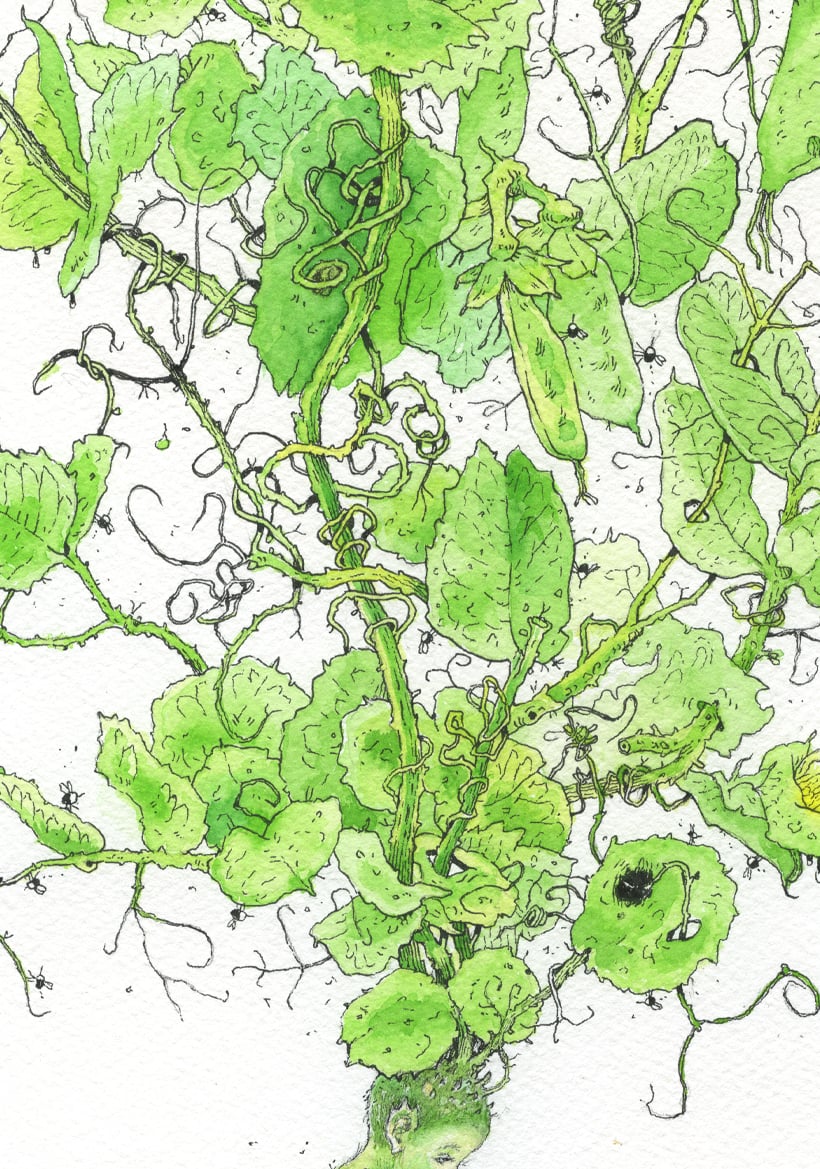 Pythias and Aristotle companions are both inspired by the new pea plants that sprung to life this spring in the garden. New limited edition print on beautiful Hahnemühle Museum premium heavyweight, 100% cotton, acid free, textured archival paper.