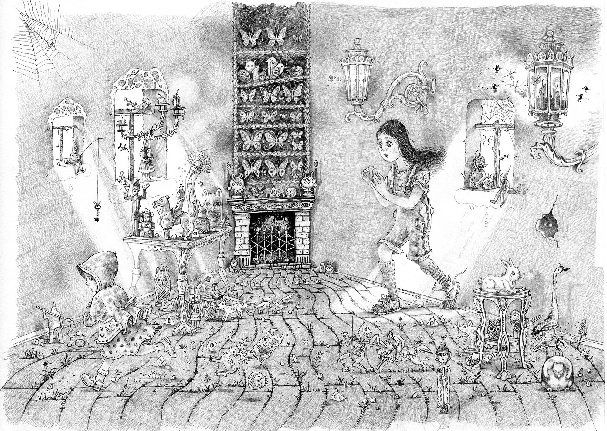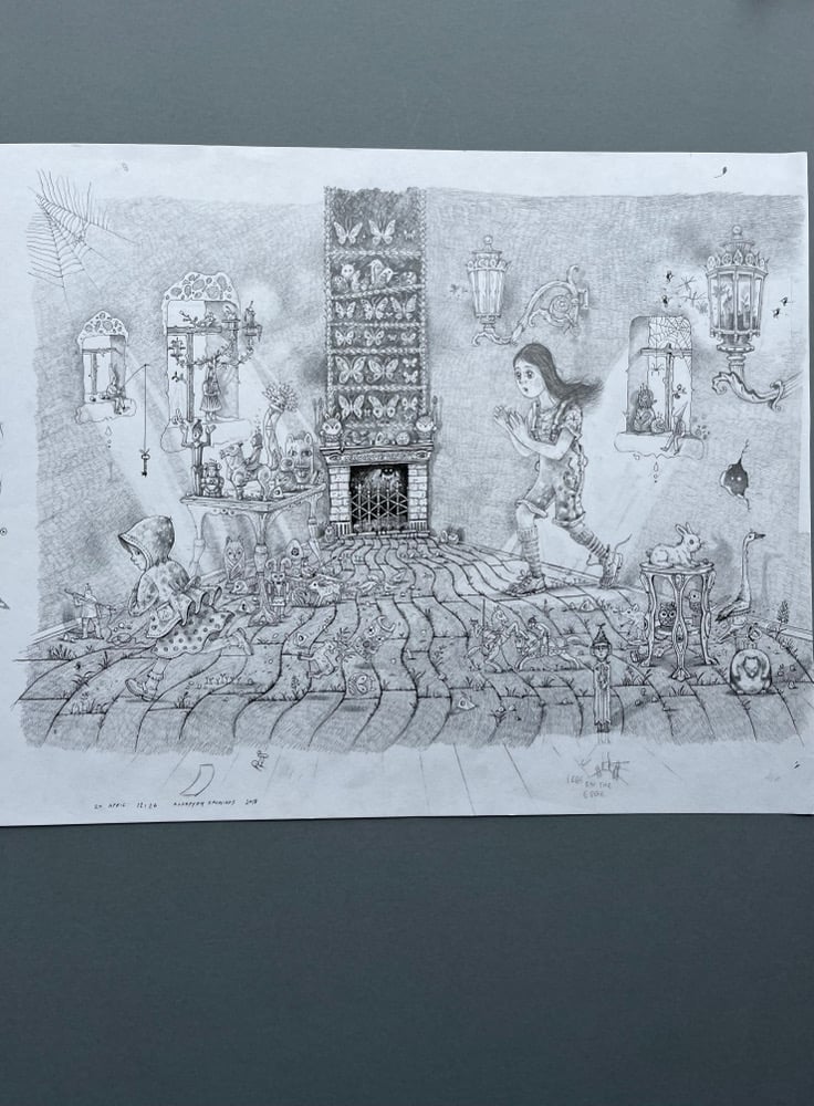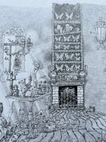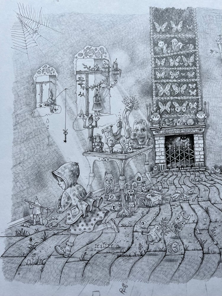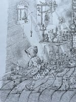 The Collector artwork, pencil on Fabriano 300gsm archival, acid free paper. Paper measures 13.8” x 11.8” (35cm x 30cm.) This piece was originally created for The Bog Chronicles/Klampyniu Kronikos, a Lithuanian book I was honoured to illustrate for award winning author Neringa Vaitkute. *I will include a signed copy of the book with the artwork while stocks last* The illustrations vary from double pages spreads, single pages to smaller inserts among the text. With over 230 pages there are many fabulous stories filled with adventure and mystery featuring the three main characters. I loved creating the artwork for the many stories and characters. The book will be signed by myself and feature a new drawing. Format: hardback book, measuring 21.5cm x 17, published 2017.If you have any questions please don’t hesitate to contact me. Monika :-)